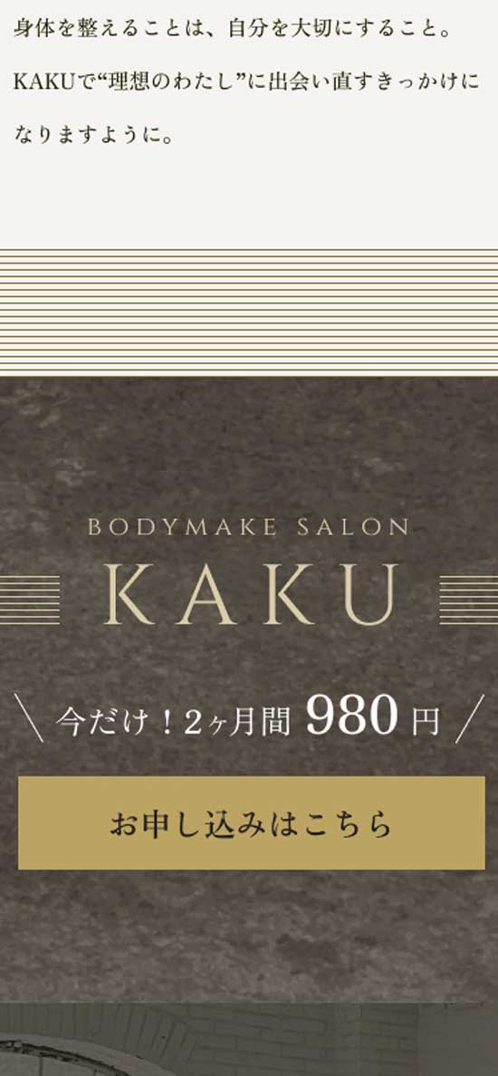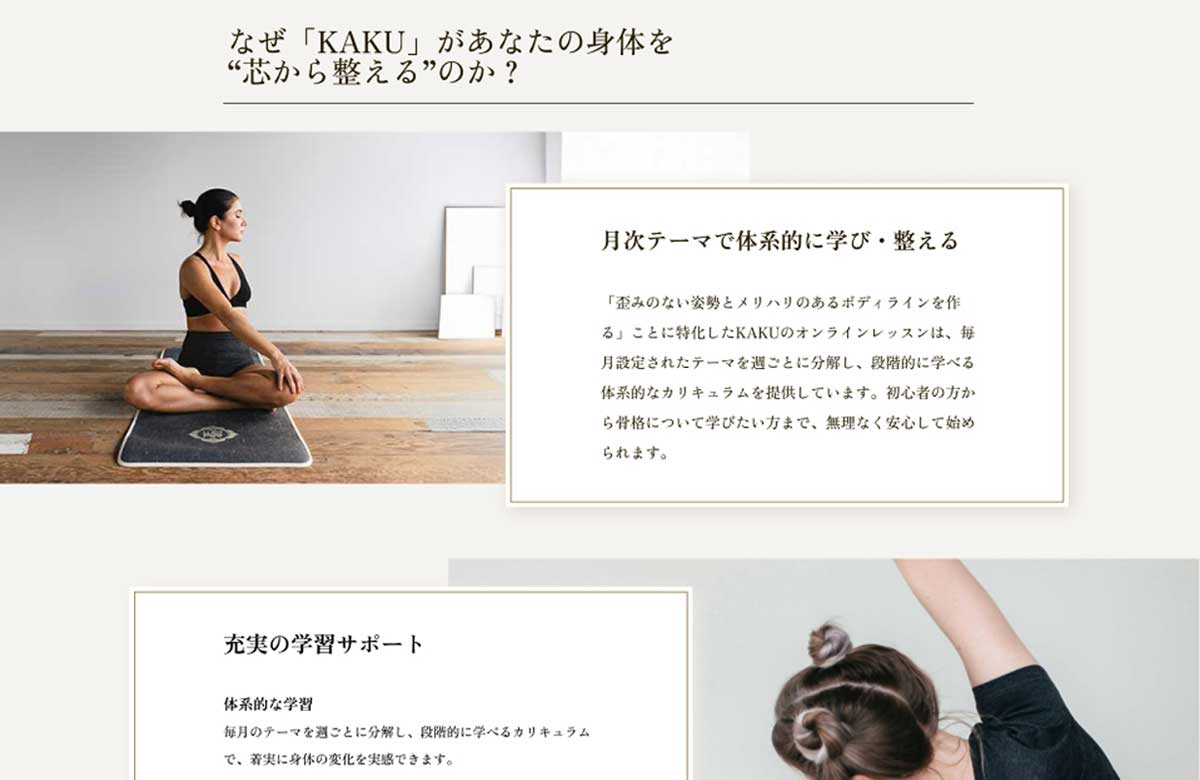 BODYMAKE SALON「KAKU」様がオンラインレッスンを開講するにあたり周知のためのLPを制作させていただきました。